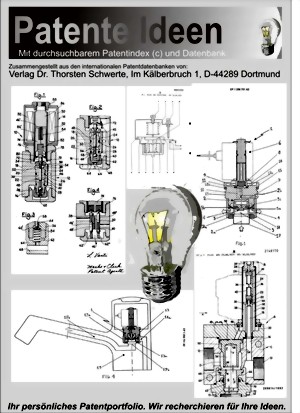 Normalerweise können es sich nur Firmen leisten umfangreiche Patentrecherchen, wie die hier angebotene, erstellen zu lassen. Die Zusammenstellung solcher Sammlungen in gut archivierbarem Format ist aufwendig und setzt kostenpflichtige Datenbankprogramme voraus. Manche amerikanische Firmen berechnen für die Recherche bis zu 3,50 Euro pro Patent! Unser Verlag bietet Ihnen hier diese Leistungen zu einem unschlagbar niedrigen Preis an. Sollte Ihnen ein Sie interessierendes Thema fehlen, so fordern Sie uns und wir erstellen Ihnen ein Angebot, zu dem Sie nicht "Nein" sagen können (allerdings nur für private und nicht kommerzielle Zwecke, für Firmenanfragen existieren andere Bedingungen (Anfragen erwünscht)).