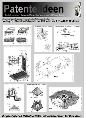 Normalerweise können es sich nur Firmen leisten umfangreiche Patentrecherchen, wie die hier angebotene, erstellen zu lassen. Die Zusammenstellung solcher Sammlungen in gut archivierbarem Format ist aufwendig und setzt kostenpflichtige Datenbankprogramme voraus. Manche amerikanische Firmen berechnen für die Recherche bis zu 3,50 Euro pro Patent! Unser Verlag bietet Ihnen hier diese Leistungen zu einem unschlagbar niedrigen Preis an. Sollte Ihnen ein Sie interessierendes Thema fehlen, so fordern Sie uns und wir erstellen Ihnen ein Angebot, zu dem Sie nicht "Nein" sagen können (allerdings nur für private und nicht kommerzielle Zwecke, für Firmenanfragen existieren andere Bedingungen (Anfragen erwünscht)).