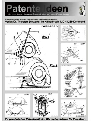 Normalerweise können es sich nur Firmen leisten umfangreiche Patentrecherchen, wie die hier angebotene, erstellen zu lassen. Die Zusammenstellung solcher Sammlungen in gut archivierbarem Format ist aufwendig und setzt kostenpflichtige Datenbankprogramme voraus. Manche amerikanische Firmen berechnen für die Recherche bis zu 3,50 € pro Patent! Unser Verlag bietet Ihnen hier diese Leistungen zu einem unschlagbar niedrigen Preis an. Sollte Ihnen ein Sie interessierendes Thema fehlen, so fordern Sie uns und wir erstellen Ihnen ein Angebot, zu dem Sie nicht "Nein" sagen können (allerdings nur für private und nicht kommerzielle Zwecke, für Firmenanfragen existieren andere Bedingungen (Anfragen erwünscht)).