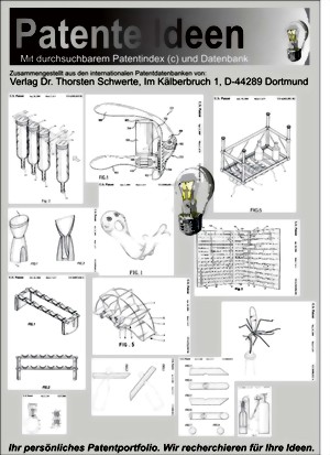 Normalerweise können es sich nur Firmen leisten umfangreiche Patentrecherchen, wie die hier angebotene, erstellen zu lassen. Die Zusammenstellung solcher Sammlungen in gut archivierbarem Format ist aufwendig und setzt kostenpflichtige Datenbankprogramme voraus. #Manche amerikanische Firmen berechnen für die Recherche bis zu 3,50 Euro pro Patent! Unser Verlag bietet Ihnen hier diese Leistungen zu einem unschlagbar niedrigen Preis an. Sollte Ihnen ein Sie interessierendes Thema fehlen, so fordern Sie uns und wir erstellen Ihnen ein Angebot, zu dem Sie nicht "Nein" sagen können (allerdings nur für private und nicht kommerzielle Zwecke, für Firmenanfragen existieren andere Bedingungen (Anfragen erwünscht)).