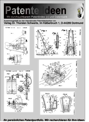 Normalerweise können es sich nur Firmen leisten umfangreiche Patentrecherchen, wie die hier angebotene, erstellen zu lassen. Die Zusammenstellung solcher Sammlungen in gut archivierbarem Format ist aufwendig und setzt kostenpflichtige Datenbankprogramme voraus. Manche amerikanische Firmen berechnen für die Recherche bis zu 3,50 Euro pro Patent! Unser Verlag bietet Ihnen hier diese Leistungen zu einem unschlagbar niedrigen Preis an. Sollte Ihnen ein Sie interessierendes Thema fehlen, so fordern Sie uns und wir erstellen Ihnen ein Angebot, zu dem Sie nicht "Nein" sagen können (allerdings nur für private und nicht kommerzielle Zwecke, für Firmenanfragen existieren andere Bedingungen (Anfragen erwünscht)).